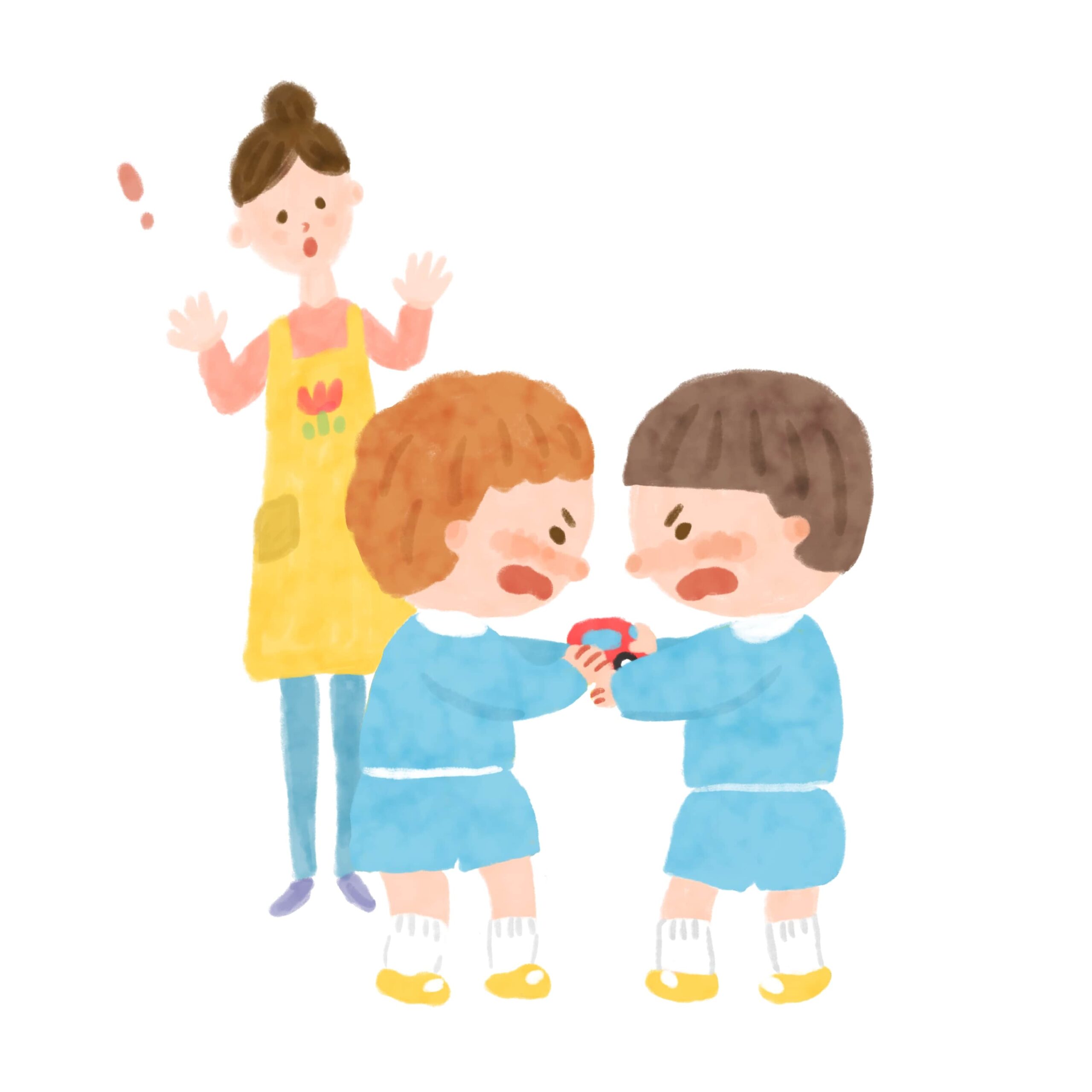 2歳児の場合使っていたおもちゃを友達が黙って取っていってしまった等、自分のやりたいことが中心であり、自分がしようと思ったことができなくて喧嘩が起こることがあります。